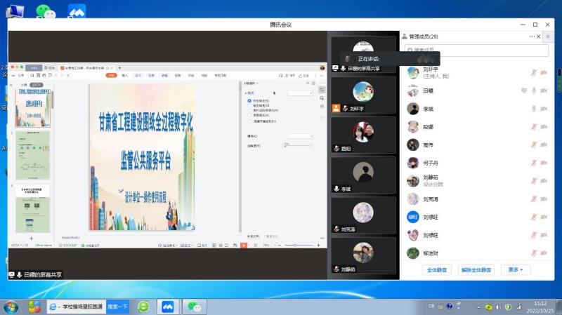 10月25日,“甘肅省工程建設(shè)圖紙全過(guò)程數(shù)字化監(jiān)管公共服務(wù)平臺(tái)的操作使用流程”培訓(xùn)順利舉行,設(shè)計(jì)分院全體員工共計(jì)44人共聚云端,充分利用線(xiàn)上平臺(tái),圍繞圖紙平臺(tái)操作流程開(kāi)展了交流與溝通,同時(shí),設(shè)計(jì)分院領(lǐng)導(dǎo)對(duì)疫情期間的工作進(jìn)行了安排。