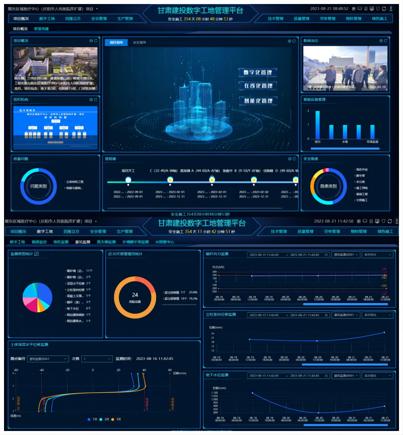 近日,由甘肅省建筑科學研究院(集團)有限公司BIM(數字研發)應用中心為甘肅第四建設集團有限責任公司隴東區域醫療中心(慶陽市人民醫院改擴建)項目打造的“智慧建造指揮中心”順利完成驗收并交付使用,獲得了甲方領導的一致好評和高度認可!