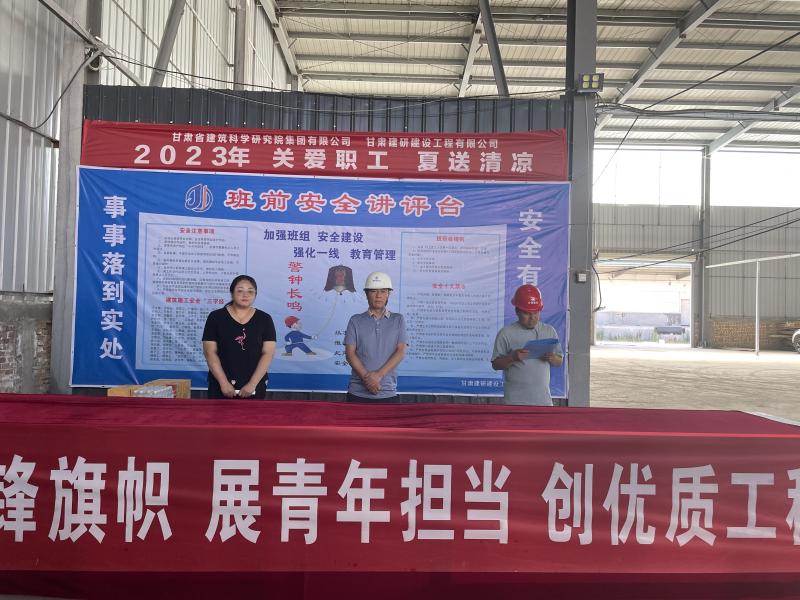 為促進黨建與業務互融互促、量質齊升,使廣大黨員、青年以更加飽滿的熱情推動工作,充分發揮基層黨組織戰斗堡壘作用,黨員先鋒模范作用和青年生力軍作用,更高效地建設好項目,引領帶動全體青年合力攻堅、創先爭優。7月21日,建研建設公司在天水菜籃子項目現場舉行“青年突擊隊”授旗儀式,甘肅建科院副總經理劉新文,建研建設公司黨支部書記孫藝珊,在建項目部全體成員、青年參加此次活動。